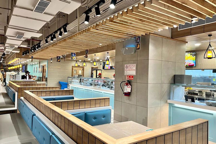 Ankur Lighting, one of the leading lighting solutions, has made an impressive refurbish of the famous Delhi eatery HALDIRAM, illuminating the space with cutting-edge LED lighting fixtures. The LED track lights offer focused and fully dimmable lighting for individual shelves and displays. Mini circular panel lights feature a nice touch by lighting the space with a soft, diffused glow making the space more welcoming for the guests.
