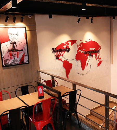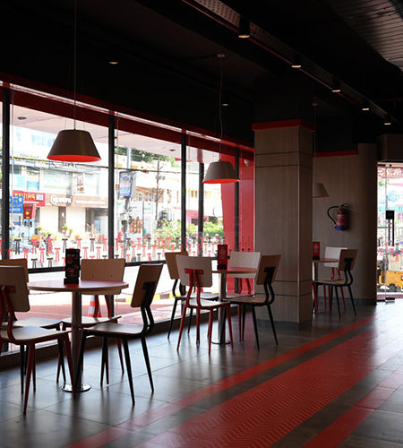 The LED surface downlights were strategically placed to provide a flattering glow and a cosy and welcoming atmosphere. Hanging lights for the restaurant were also made by Ankur Lighting, but they were personalized to the client's specifications and added a special touch to the whole ambience. KFC in Hyderabad now provides a better eating experience for customers with a new set of these energy-efficient and aesthetically pleasing LED lighting fixtures.